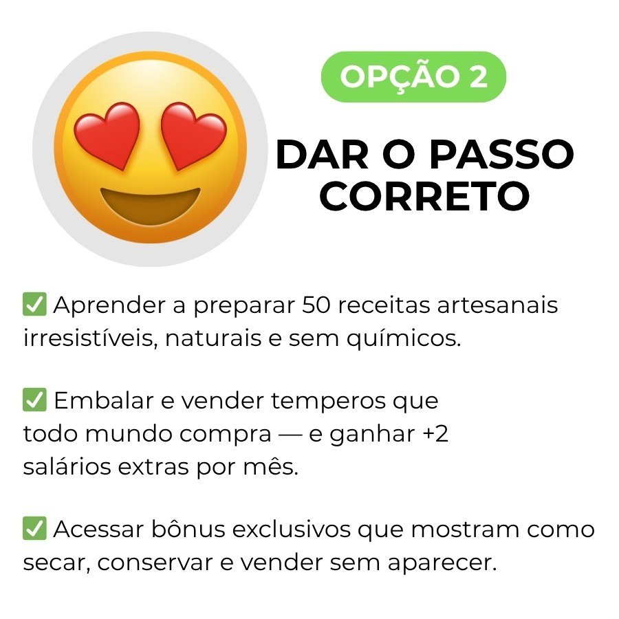 Não são apenas temperos: é a sua oportunidade de empreender com algo simples, rentável e que nunca deixa de vender. Enquanto uns continuam comprando, você estará ganhando.